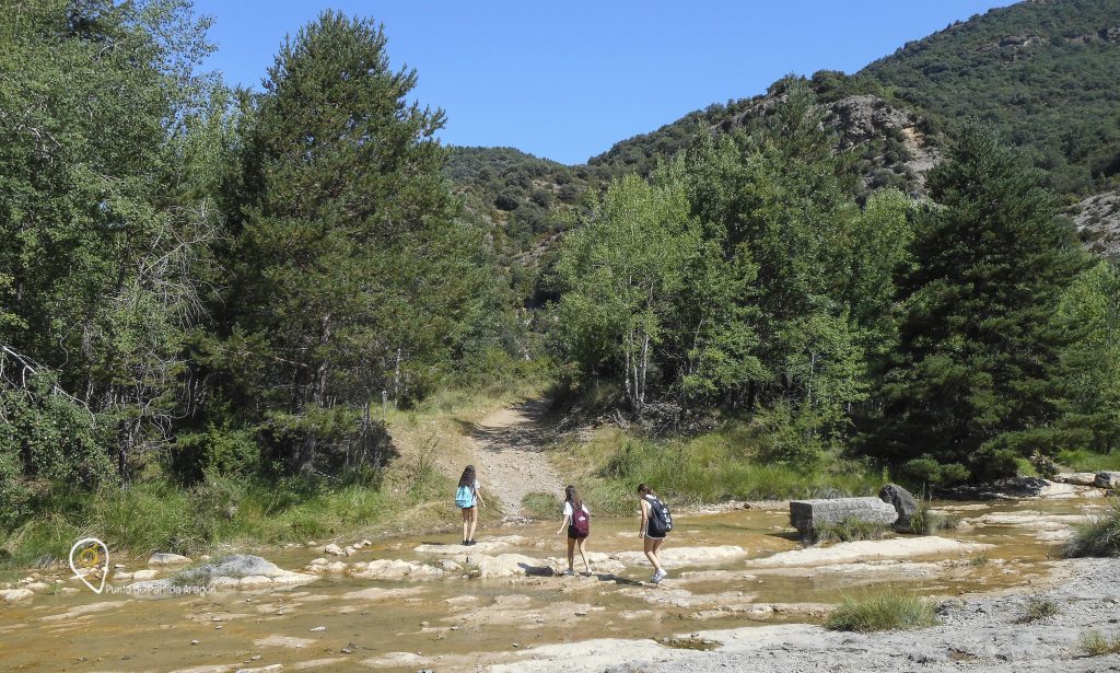 Camino a las piscinas naturales: se llega fácilmente, se puede ir remontando el río hasta encontrar algún sitio con sombra en las riberas o alguna piedra plana en la que aposentarse. Yo te voy a proponer llegar hasta las pozas más alejadas haciendo el camino entre Santa María de Belsué y la Pardina de Ascaso y hacer el regreso descendiendo por el río.