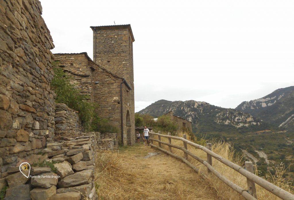 En el núcleo urbano encontramos varias construcciones interesantes de arquitectura tradicional pirenaica. Destaca sobre todo la iglesia parroquial de San Miguel Arcángel de finales del siglo XVII, situada al borde mismo de un acantilado. En el interior del pueblo hay un par de pasos abovedados preciosos y un interesante pozo-fuente que fue usado ya en época musulmana, uno de los pocos que hay en la comarca.