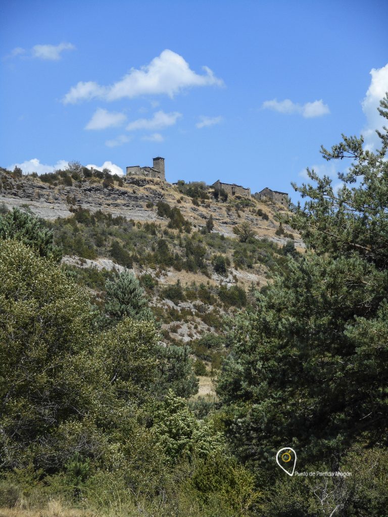La ubicación de los edificios junto al acantilado, en una situación dominante sobre el valle formado por el rio Flumen, recuerda el carácter defensivo que probablemente tendria en su origen este pueblo, que aparece documentado por primera vez en el s. XIII.