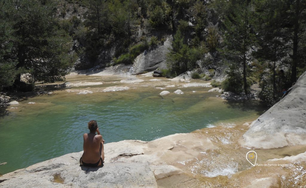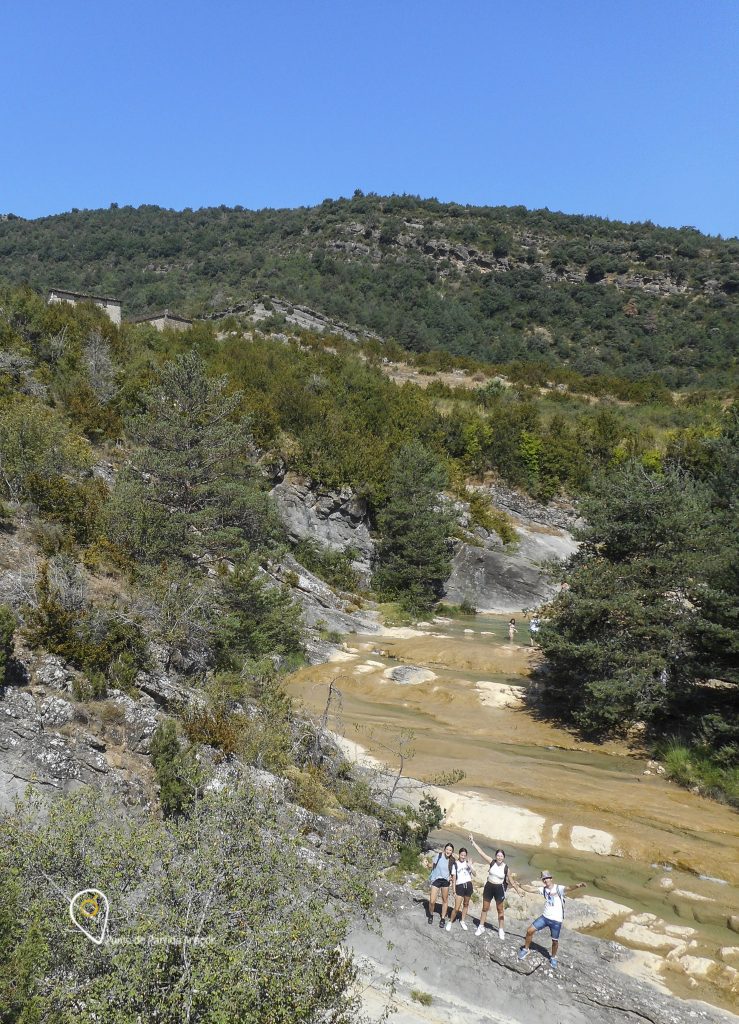 Estas piscinas naturales las forma el río Flumen, un río de aguas limpias ya que está alejado de cualquier pueblo habitado. Las pozas están excavadas en la roca y la mayoría tienen poca profundidad lo cual, unido a que en verano el cauce es menos abundante, hace que el agua no esté muy fría para mi gusto, pero perfecta para niños o personas más frioleras. Esta excursión la he planteado en verano, por lo que el baño es inevitable, pero es una zona preciosa que podemos visitar y disfrutar, incluso más, en cualquier otra época del año. El paisaje esculpido por la acción del agua es sorprendente, el color del agua de un verde intenso, el ocre de la roca, las pozas de distinta profundidad y las pequeñas cascadas.