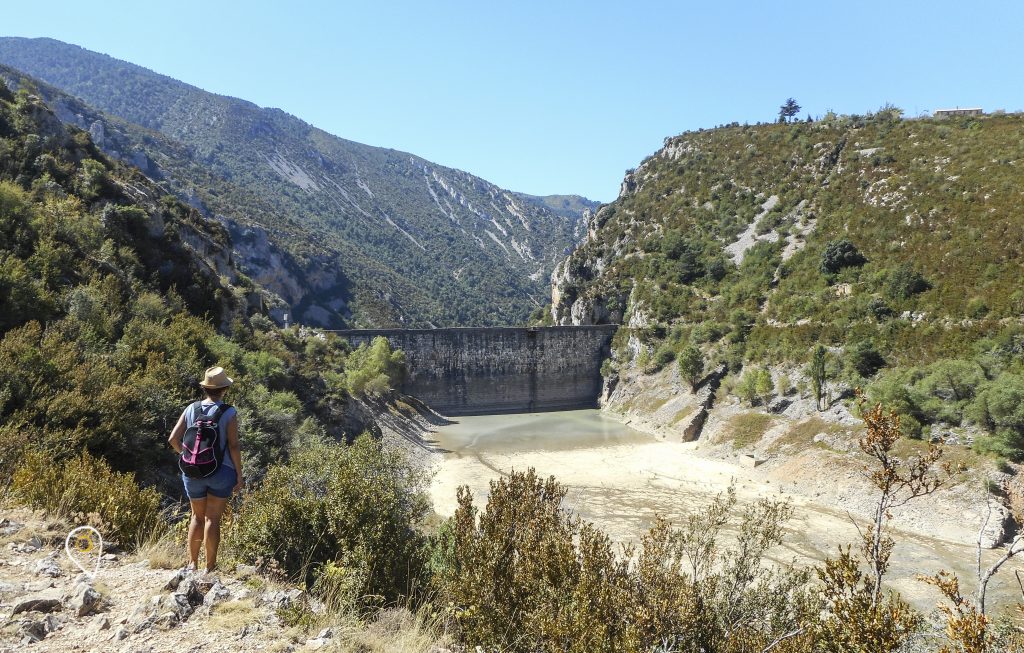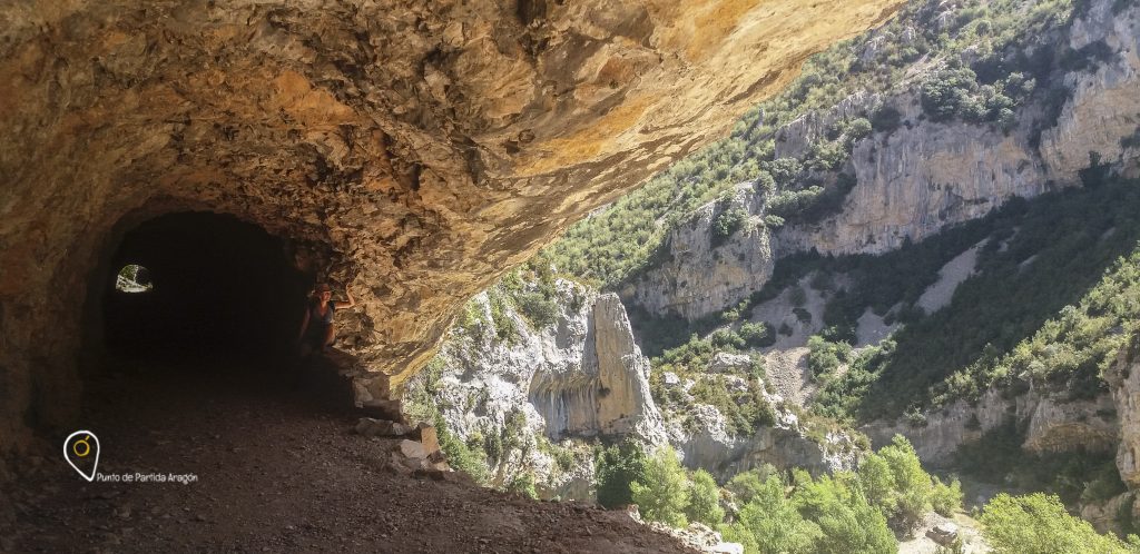 Empieza el tramo más chulo de la ruta y en la que, con toda seguridad, los niños disfrutarán más. El sendero atraviesa varios túneles excavados en la propia roca, uno de ellos bastante largo hasta que, finalmente, alcanzamos la Presa de Cienfuens. Estos túneles fueron picados en la roca para pasar el material de construcción de este embalse. Sobre nuestras cabezas tenemos ya los impresionantes acantilados.