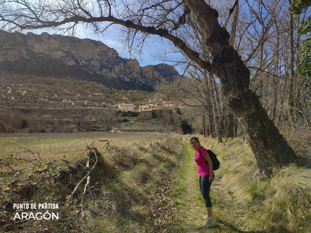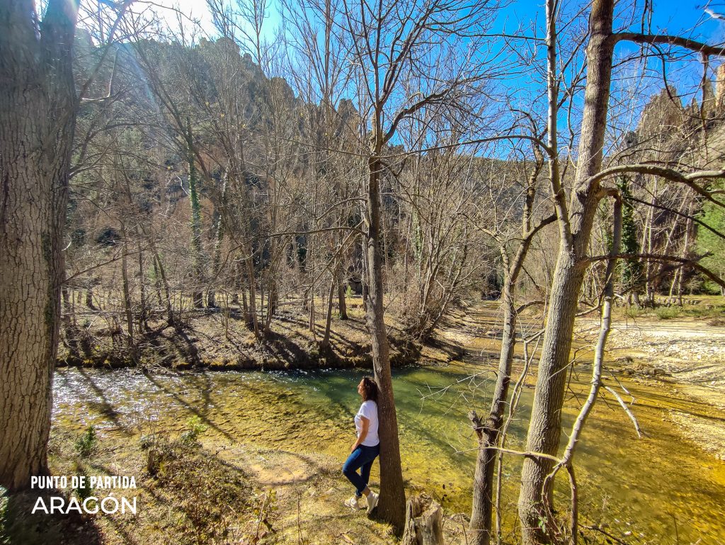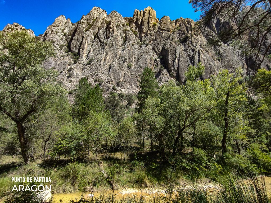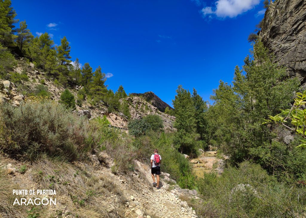 El inicio ya es mágico porque nos encontramos en el encuentro de dos ríos, el Pitarque – Cañada y el Guadalope, que continúa a partir de aquí su largo recorrido. Es un lugar precioso que nos anima a iniciar la caminata.