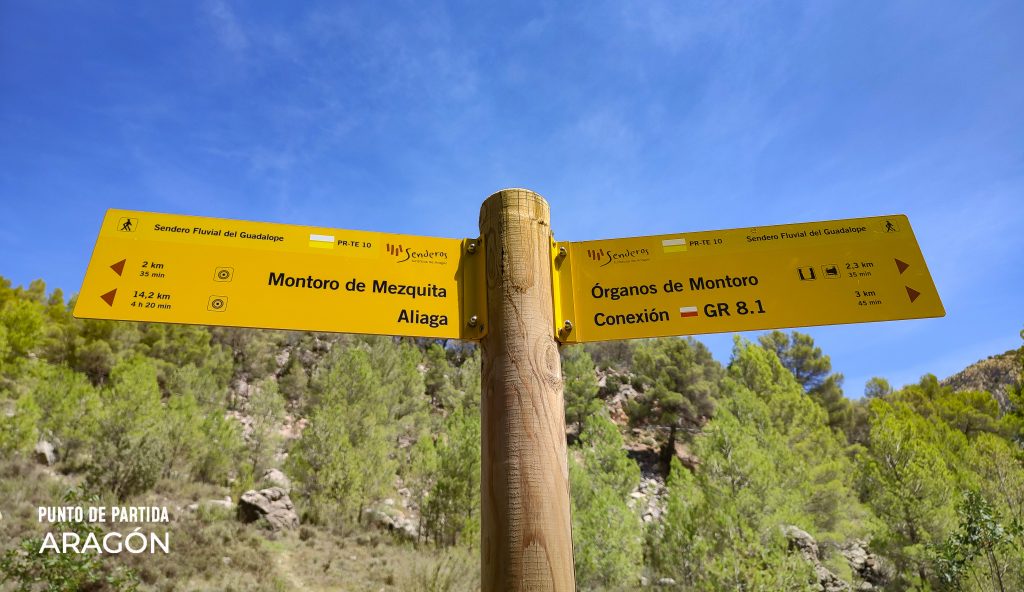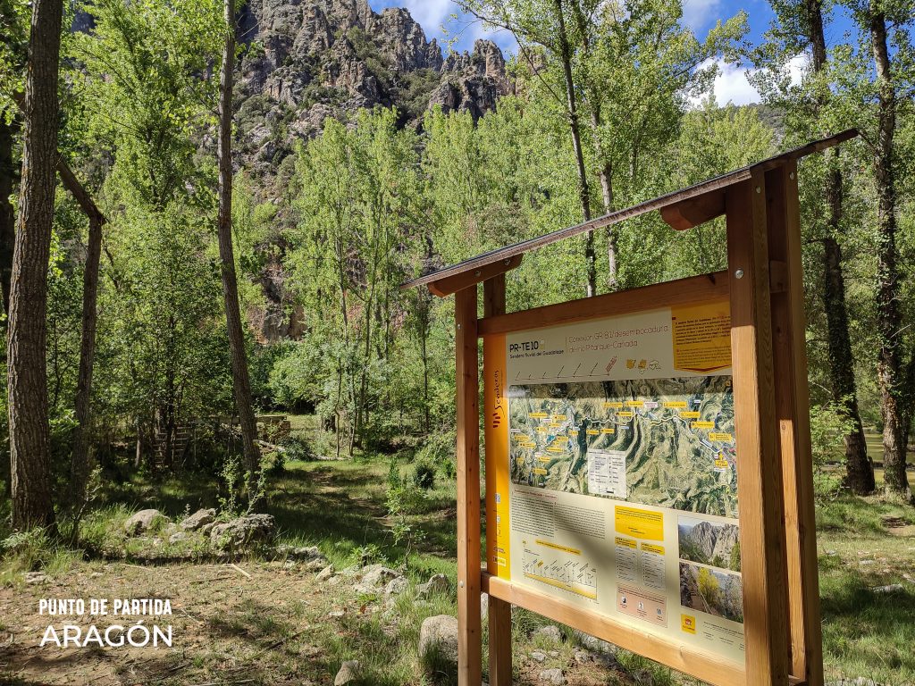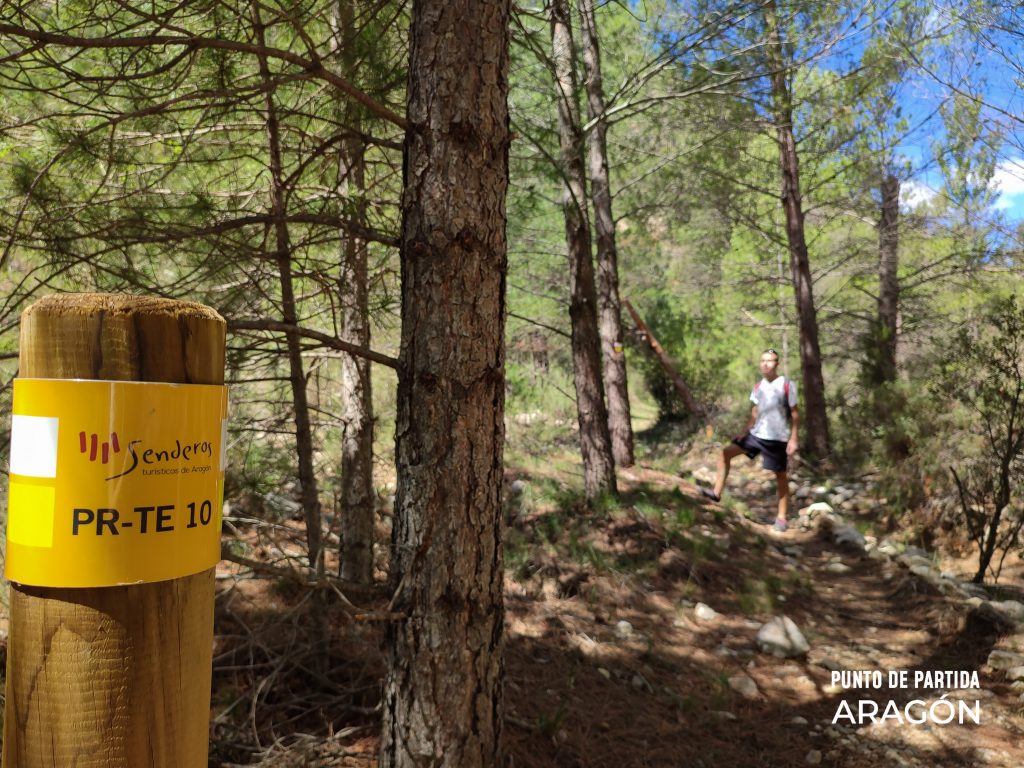 - Para comenzar, debes saber que estamos en uno de los extremos del Sendero PR-TE 10 (en el opuesto al pueblo de Aliaga), por lo que podría ser el inicio del sendero si decidiéramos comenzarlo por aquí y hacerlo completo.