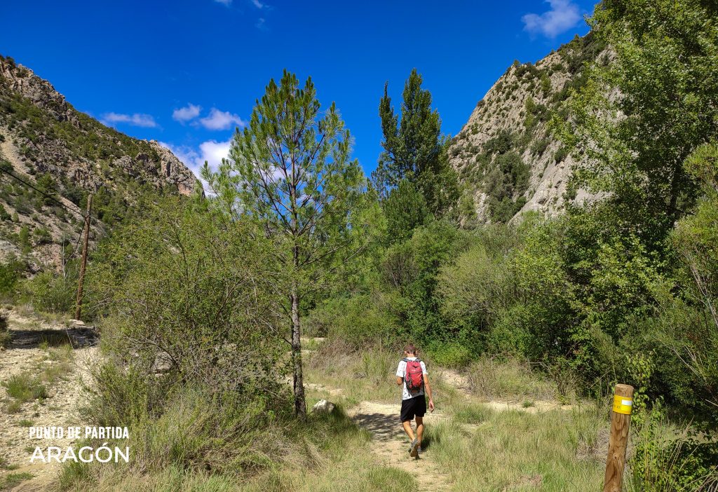 Nosotros decidimos comenzar en el extremos del PR-TE 10 situado junto la desembocadura del río Pitarque-Cañada en el Guadalope.