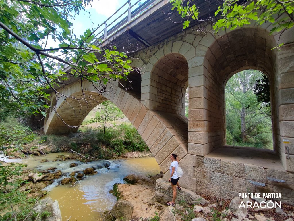 Para llegar en coche, partiendo del Hotel Hostal de la Trucha seguiremos por la A-1702 unos 600 metros dirección a Ejulve. Transcurrida esa distancia, veremos en el sentido de nuestra marcha un ancho camino de tierra que desciende hasta el río con unas señales de madera que indican Puente de la Villa y Puente del Vado, que es la dirección que debemos tomar.