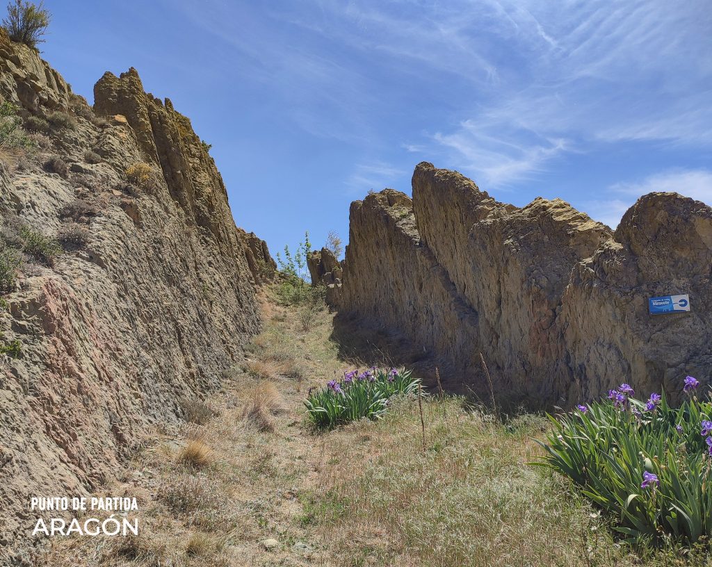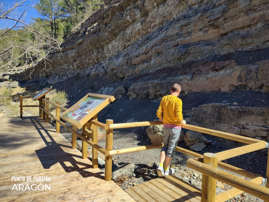 El acceso es precioso, entre estratos verticales y el entorno geológico de este yacimiento es representativo del Parque Cultural del Maestrazgo, Geoparque Mundial de la UNESCO, donde se ubica el pueblo.