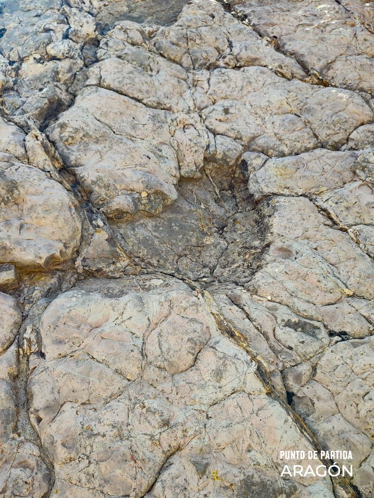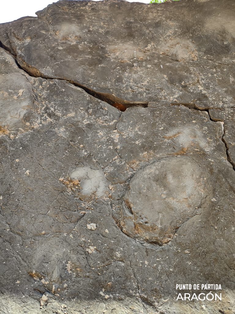 En este yacimiento se sitúan unas 70 huellas ovaladas producidas probablemente por una manada de dinosaurios saurópodos tal y como refleja la distribución caótica de las icnitas.