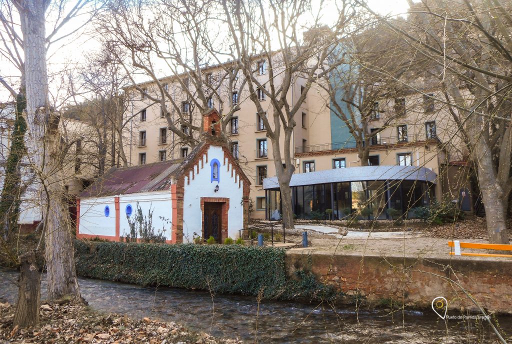 Desde el pueblo, tras cruzar un puente sobre el río Mesa, el primero que nos encontramos es el Balneario Serón con su pequeña capilla.