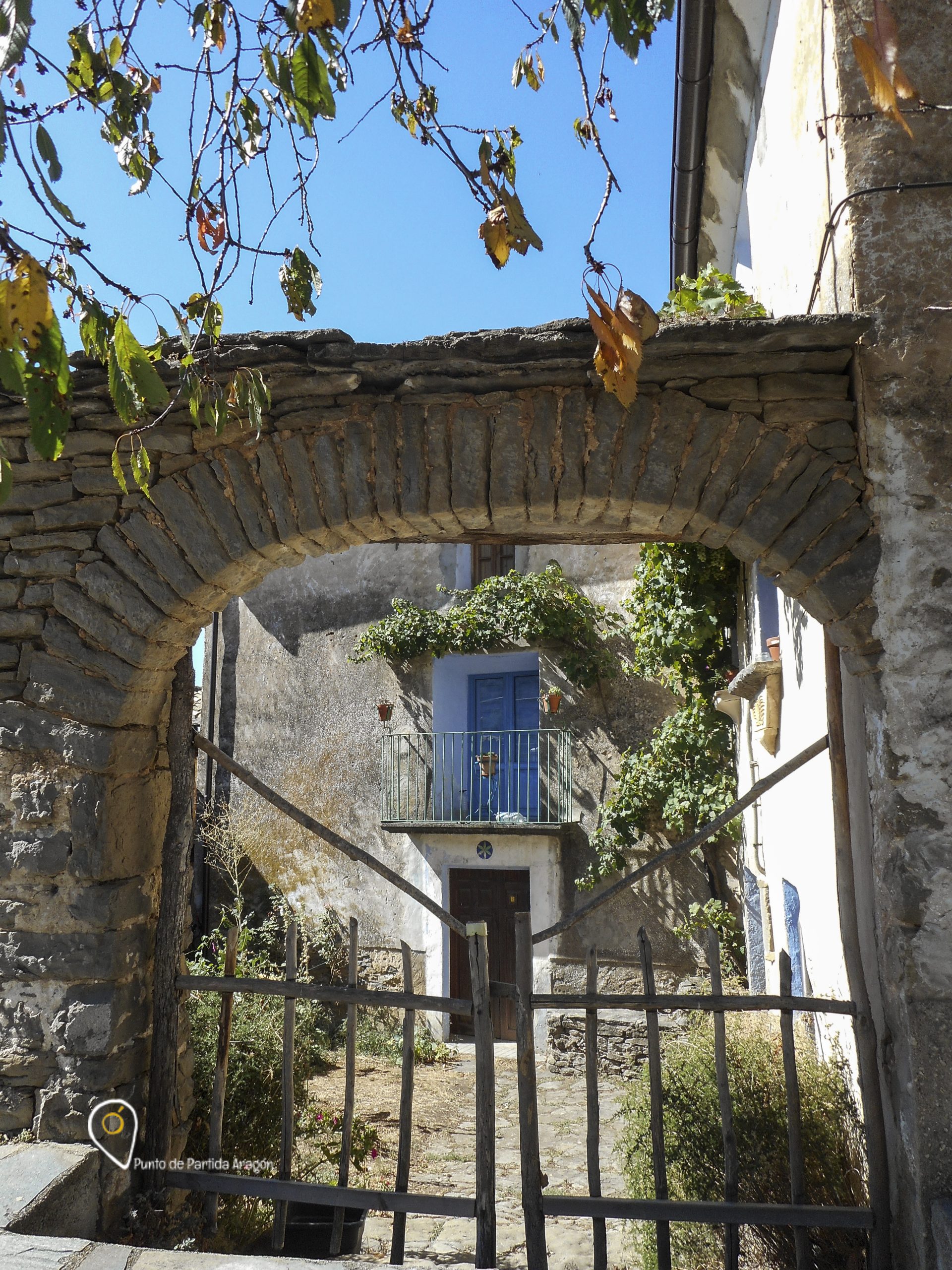 A mitad de la calle principal que cruza el pueblo encontramos una serie de carteles informativos sobre la zona, junto a ellos, parte una callejuela empedrada por la que llegaremos al barrio de la Honguera. Esta zona tiene las casas más bonitas del pueblo, a mi me maravillaron las dos que os muestro en la foto.