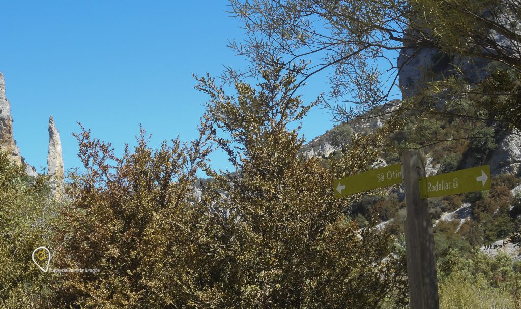 Cómo llegar: el pueblo de Rodellar será nuestro punto de partida; es una localidad del municipio de Bierge que está a 1 hora y 20 minutos de Huesca. Una vez llegues a Bierge, sólo tendrás que coger el desvío que indica esta localidad. Hay un parking bastante ámplio a la entrada del pueblo y unos pocos aparcamientos más en batería un poco más adelante, cuando empiezan las primeras casas.