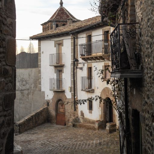A mitad de la calle principal que cruza el pueblo encontramos una serie de carteles informativos sobre la zona, junto a ellos, parte una callejuela empedrada por la que llegaremos al barrio de la Honguera. Esta zona tiene las casas más bonitas del pueblo, a mi me maravillaron las dos que os muestro en la foto.