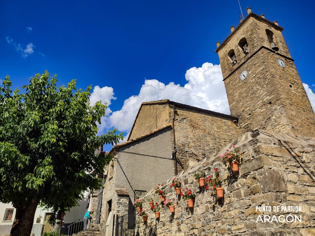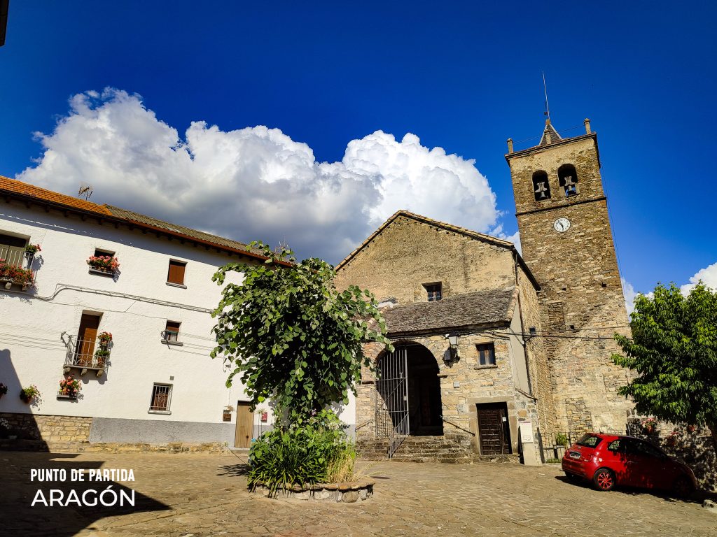 En el centro de la plaza, el Crucero, con su cruz en lo alto, que marca el encuentro de los caminos a Aísa y Aragües del Puerto. Repartidos por varios puntos de la plaza y sus alrededores, clavados en las fachadas de sus casas, nos llaman la atención las señales metálicas, mucho más modernas, que nos hacen saber en qué dirección se sitúan los otros pueblos del valle.
