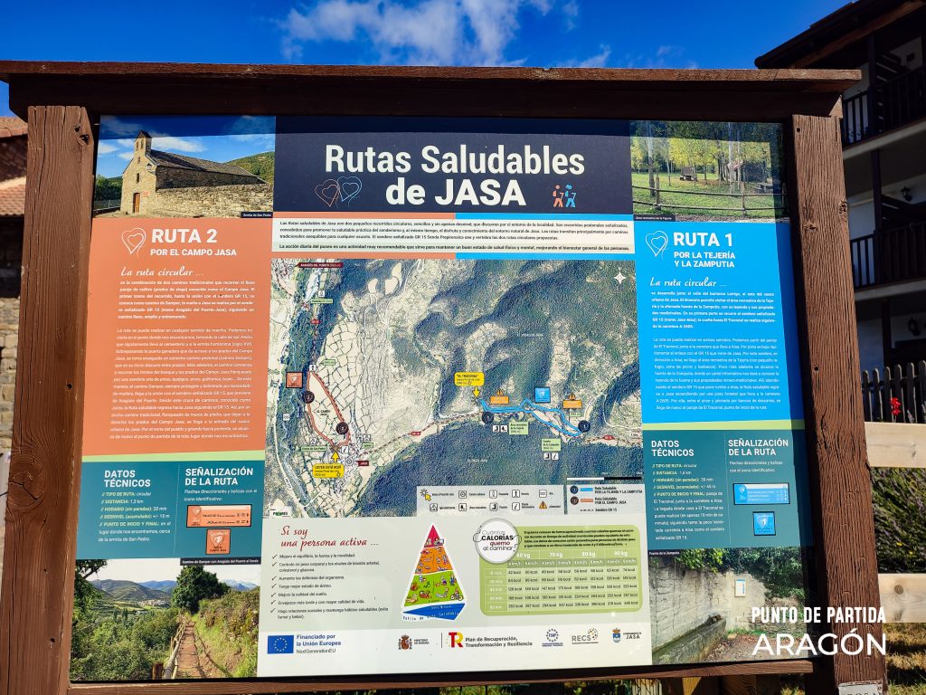 La variada red de senderos de Jasa te ofrece un amplísimo abanico de posibilidades senderistas, algunos son senderos circulares, otros recuperan caminos históricos, alguno pasa junto a fuentes de agua cristalina o atraviesa bosques bien conservados, ya ves que la oferta es variada. En la web del ayuntamiento de Jasa tienes un apartado «Paseos y excursiones» con más información y en el mismo pueblo hay paneles con propuestas andarinas.