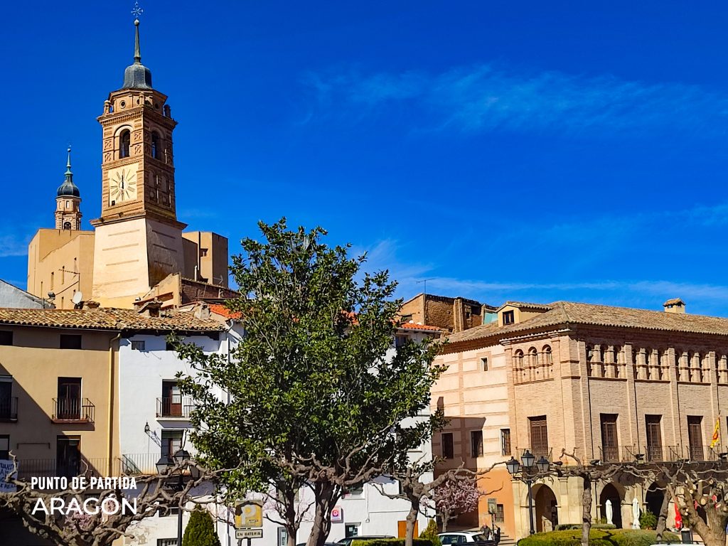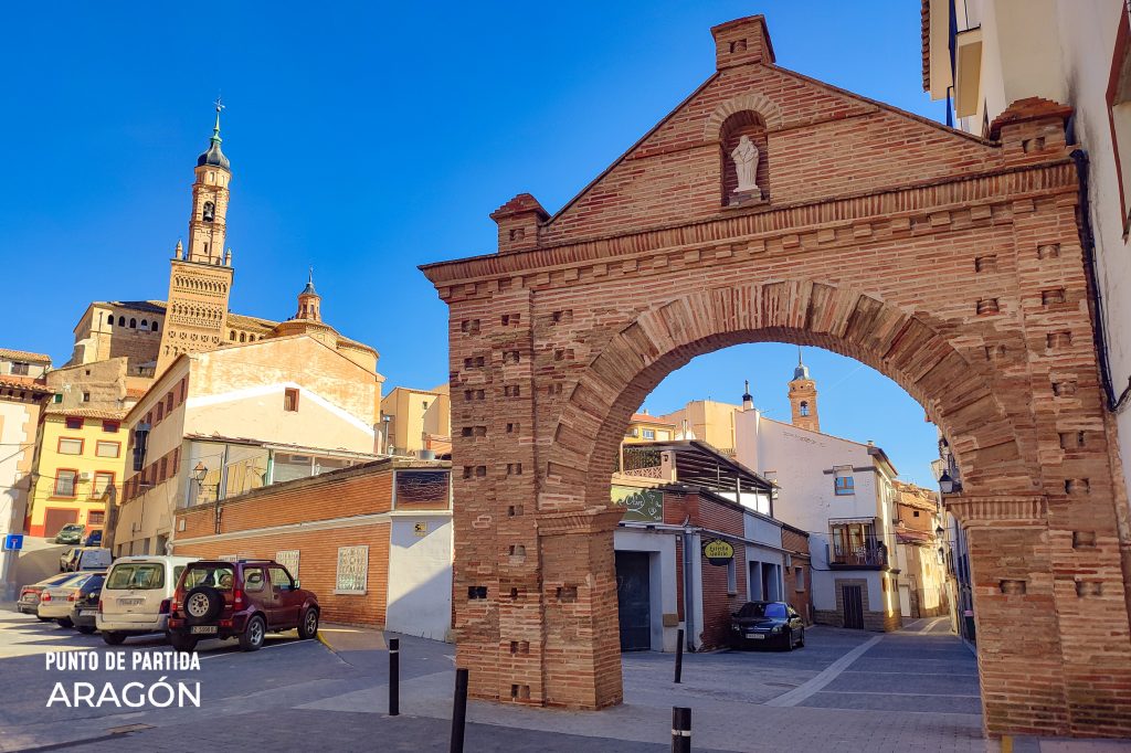 El paseo nos lleva hasta la Iglesia de Santa María, con su torre, construida durante el siglo XIII, de dos cuerpos, el primero de planta cuadrada, siguiendo el modelo de alminar almohade, y el segundo, un campanario octogonal barroco. El resultado es una torre bellísima, una de las torres mudéjares más antiguas y bonitas de Aragón.