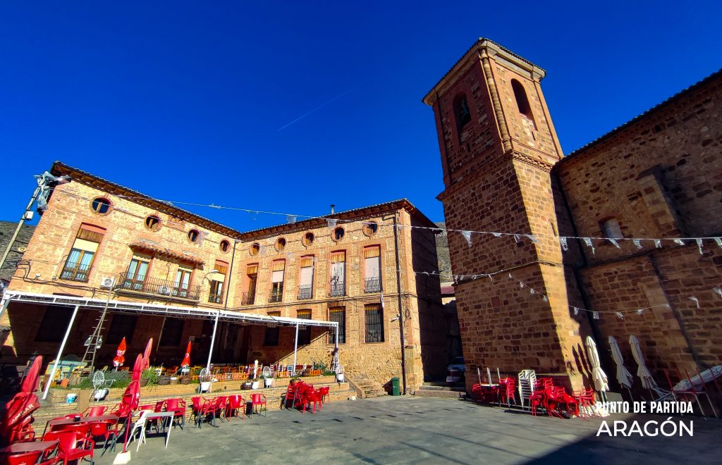 Al otro lado, nos encontramos con la Casa Consistorial, construida en el siglo XVI, uno de los edificios mudéjares civiles más interesantes y desconocidos de Aragón, con su hermosa lonja en la parte inferior y su decoración de ladrillo resaltado.