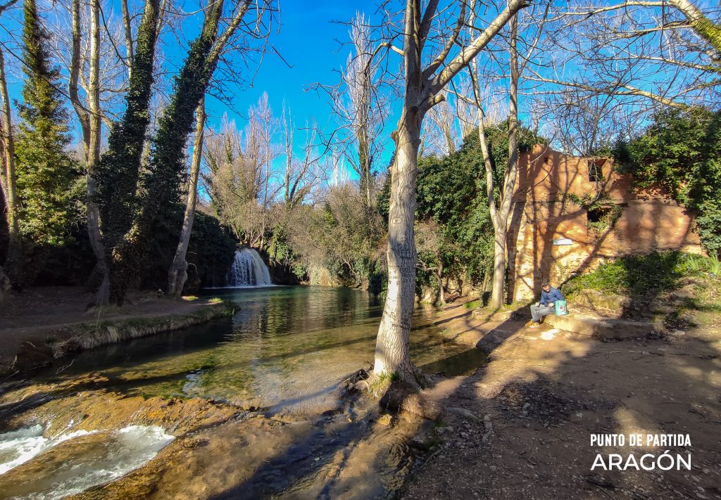 Para encontrar el Pozo de los Chorros, debes seguir la carretera dirección Berdejo y a unos 300 m. verás una explanada asfaltada y una casa almacén blanca. Esta es la zona para aparcar y una pequeña señal de madera te indica el inicio de un corto sendero que te lleva hasta la cascada.