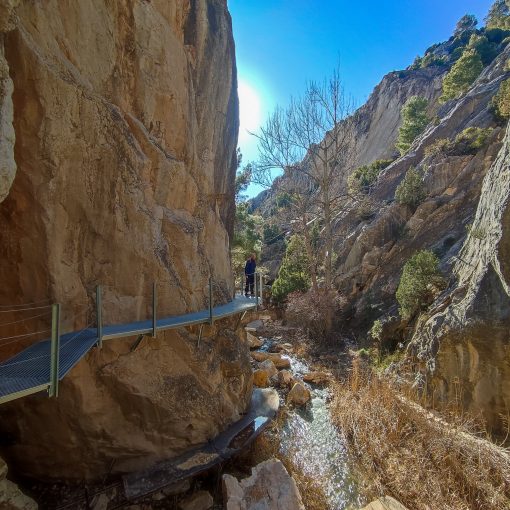 En el recorrido nos encontraremos con una presa y veremos encaramados en la ladera los restos de la Masía del Latonar, que nos recuerda que hace años aquí vivían algunas familias y trabajaban de los campos de cultivo que se desarrollaban en bancales.