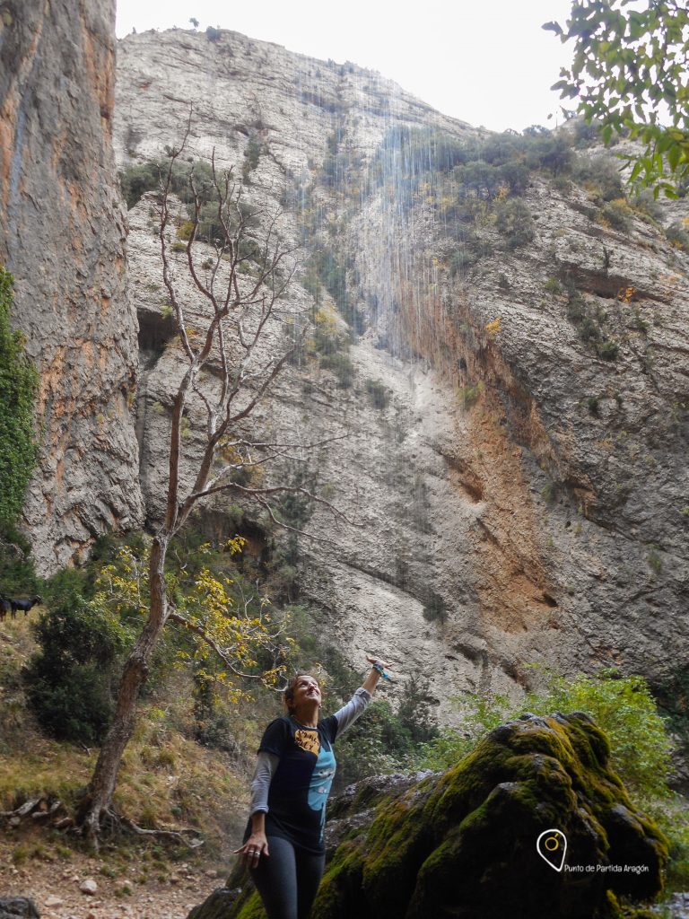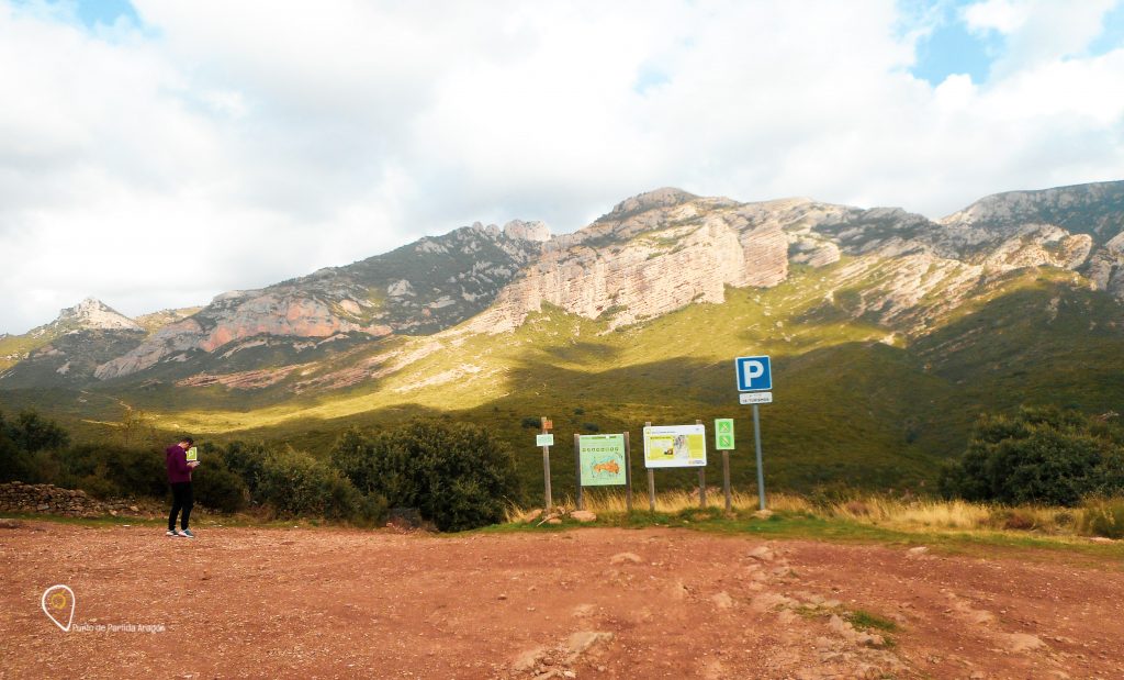 Encontrarás aquí unos carteles con el mapa de ruta, indicaciones sobre el sendero y recomendaciones importantes. Según el cartel (y nosotros constatamos que es así) el tiempo estimado del recorrido es de 4 horas 30 minutos (ida y vuelta), pero ten en cuenta que esto es sin hacer paradas, algo que te será imposible, vas a recorrer uno de los senderos más bonitos de Aragón y, creeme, querrás detenerte más de una vez para contemplarlo, hacer alguna foto o reponer fuerzas.