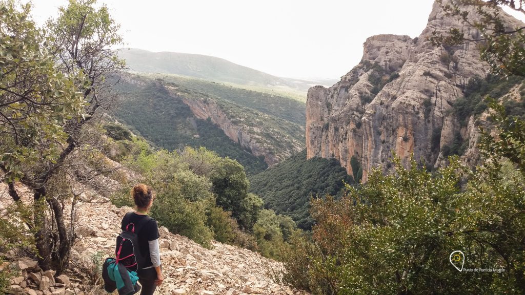 No debes preocuparte por la orientación, el camino está marcado en su mayor parte con la pintura roja y blanca del GR 1 y con señalización de sendero S6 del Parque Natural de la Sierra y Cañones de Guara cada vez que hay una bifurcación dudosa.