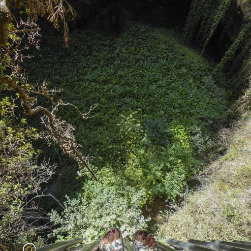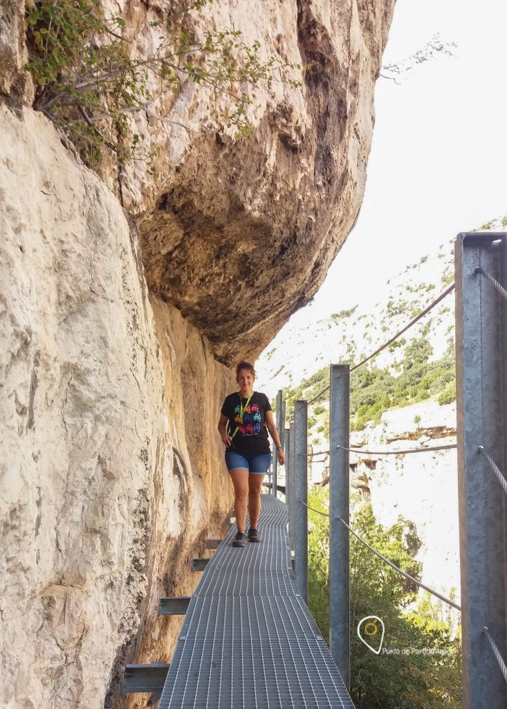 A partir de aquí, volveremos a subir durante un buen rato, viendo como el terreno se va cerrando y llegando a los tramos de pasarelas y escaleras más vertiginosas y también uno de los puntos más espectaculares del sendero.