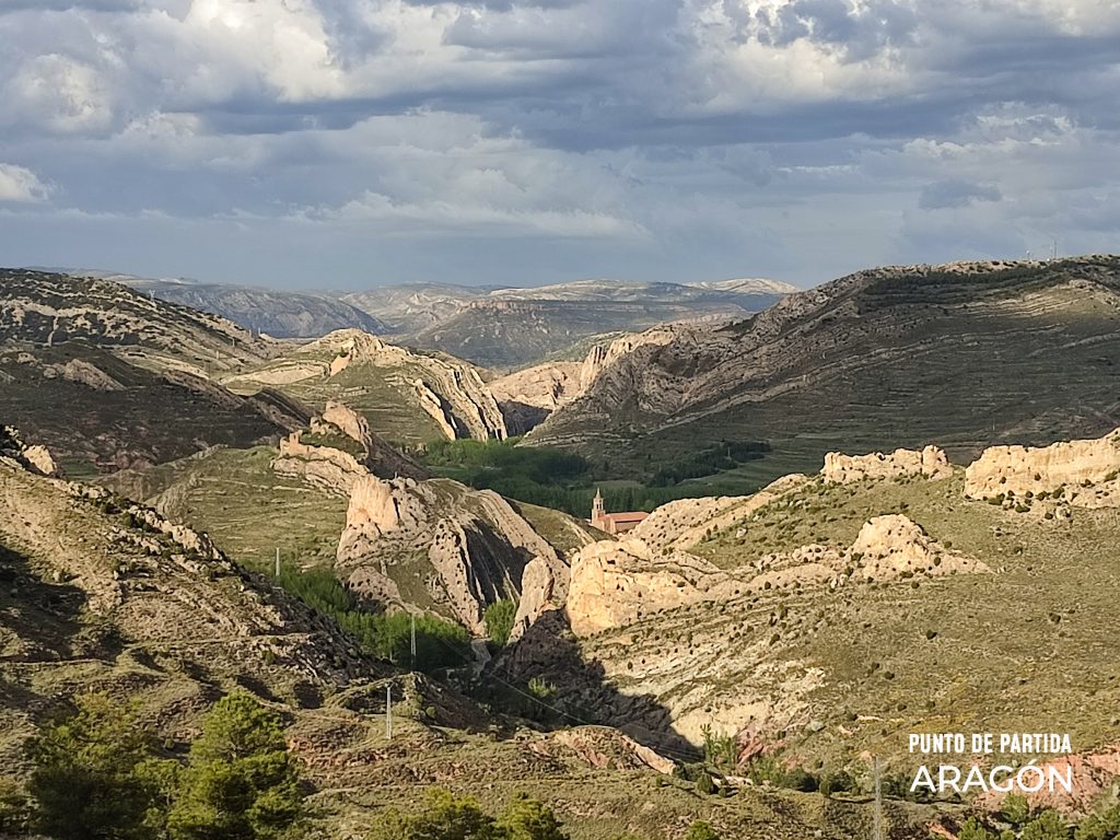 Una opción es empezarlo ya en el pueblo de Aliaga, ahorrando así una media hora en la ruta. Es la que escogimos nosotros y, al terminar, nos trasladamos en coche al Barrio de Santa Bárbara para conocerlo.