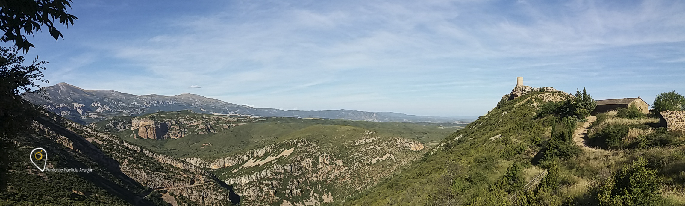 El auténtico espectáculo está en contemplar las vistas que tenemos a nuestro alrededor. Por un lado se domina toda la Hoya de Huesca, entendiendo el porqué de su emplazamiento, acechando desde las alturas las tierras donde vivían los moros. Por el otro, el desfiladero que conduce a Vadiello, al borde de las gargantas del río Guatizalema y en las puertas de la Sierra de Guara.