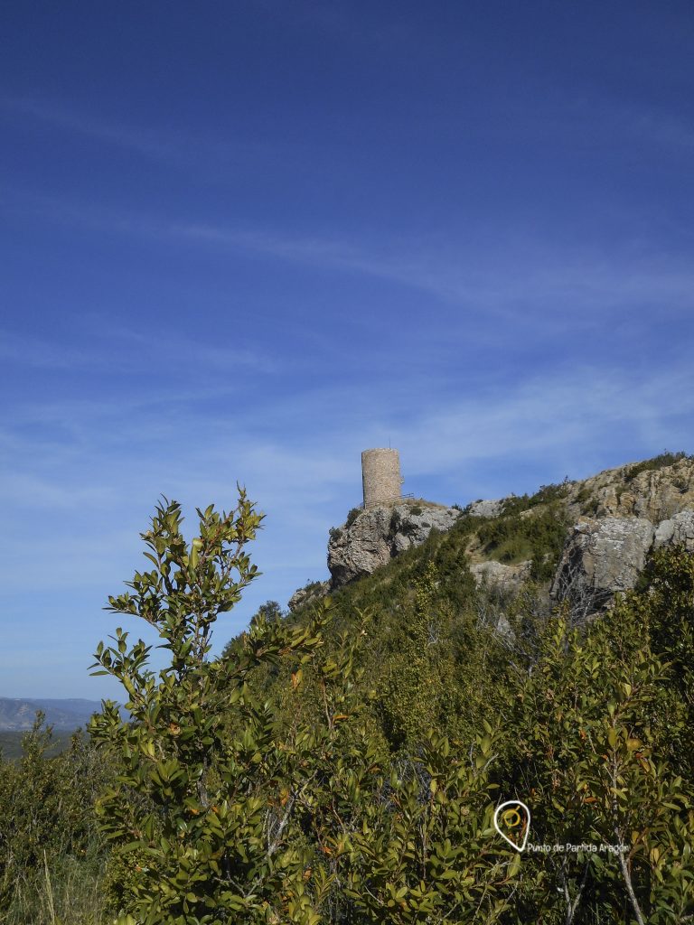 En lo más alto vemos ya la torre románica de piedra, que fue concebida para fines defensivos, como torre de vigilancia o señales. Por su tipología podría fecharse en la segunda mitad del siglo XI, tras la reconquista. Tras haber alcanzado un notable estado de deterioro, fue restaurada por completo hace unos años.